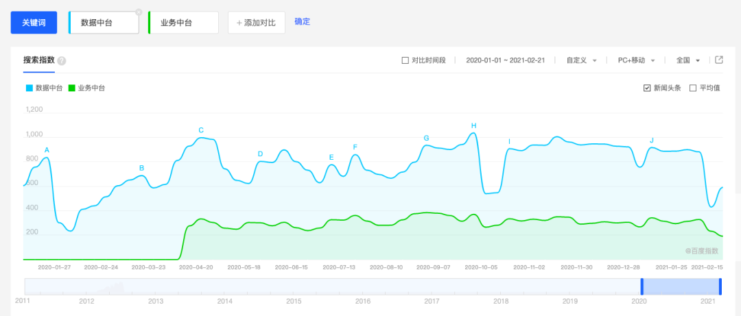 数据中台与业务中台的百度指数对比