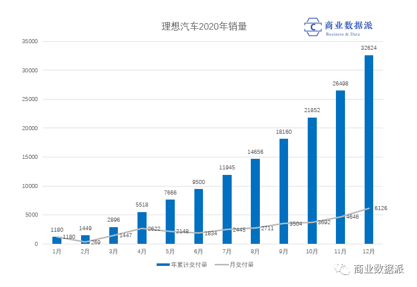 据官方数据,理想汽车2020年12月交付6126辆汽车,同比前一年增长355%。2020年1月至12月,理想汽车共交付32624辆车,创历史新纪录。理想ONE作为目前理想汽车唯一量产车型,截止到2020年12月31日,理想汽车在全国建立52家零售中心,覆盖41个城市(1月份已经达到60家覆盖47个城市);售后维修中心及授权钣喷中心114家,覆盖83个城市,按照官方近期公布的最新目标,理想汽车将在2021年扩张到200家线下店。