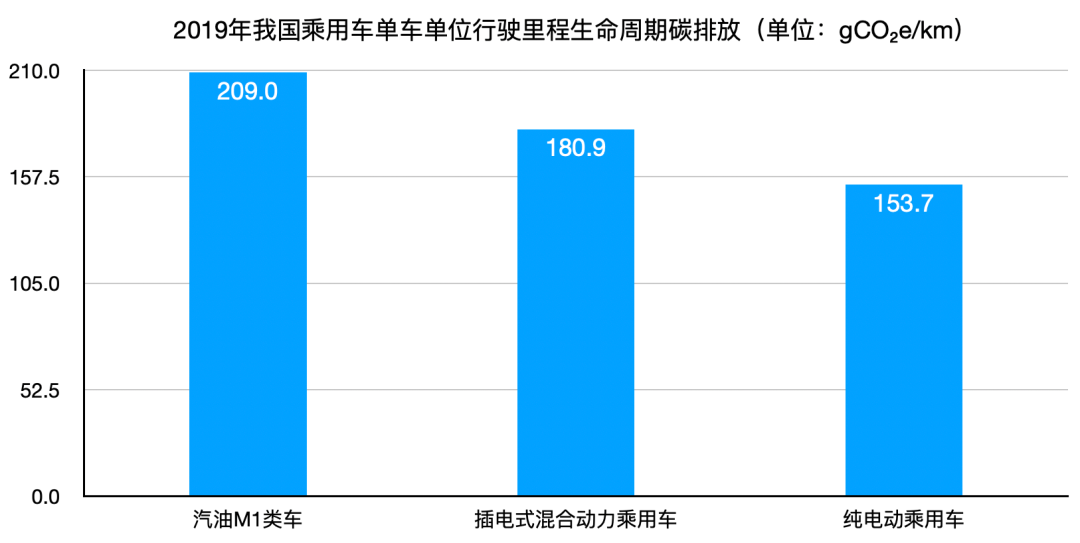 一直以来,业内对插混车是否具有节能环保效果颇有争议。从数据表现来看,插混车相较于燃油车会更加低碳环保。中汽数据有限公司发布的《中国汽车低碳行动计划研究报告2020》显示,2019年我国乘用车单车单位行驶里程生命周期碳排放介于107.0-350.0gCO₂e/km,各种车型之间碳排放差距明显。其中,汽油M1类车平均碳排放为209.0gCO₂e/km,插电式混合动力乘用车碳排放为180.9gCO₂e/km,纯电动乘用车碳排放最低,为153.7gCO₂e/km。