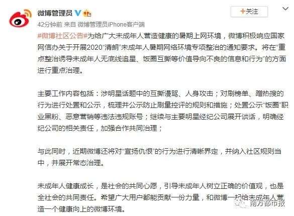但后来,发生的诸如蔡徐坤周杰伦打榜风波以及肖战事件等,也都使得外界对于粉丝为明星打榜的疯狂行为进行反思,而新浪微博也在去年开始要整治“打榜乱象”,称将重点整治诱导未成年人无底线追星、饭圈互撕等行为。