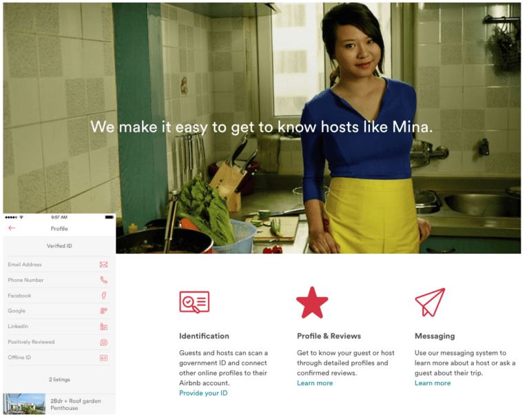 举个例子,信任和透明度对于 AirBNB 非常重要。他们创建了一个登陆页面来传达这一价值:https://www.airbnb.com/trust。