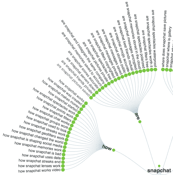 举个例子,以下是我使用 SEMrush 和 answerthepublic.com 研究 Snapchat 的一个实例。