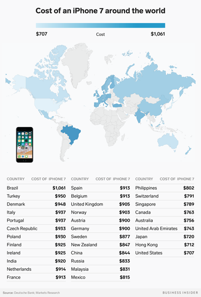苹果在印度的低迷表现由来已久,一部分原因是高额关税让印度的 iPhone 的价格居高不下,比如 iPhone 7 在印度的价格就比法国和西班牙等发达国家还要高。