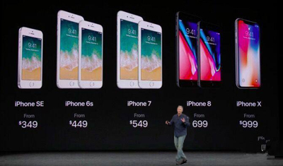 外媒评论称,起步价的参考意义很弱。因为高储存空间和高配置的机型远远高于基本款的价格。例如,64GB iPhoneX 售价为999美元,256GB 的 iPhone X 售价高达1149美元。