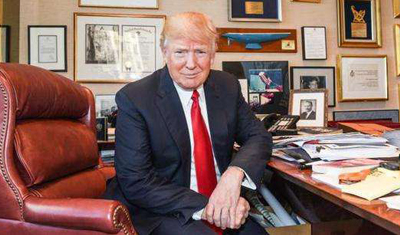 8月30日,美国总统特朗普在总统办公室接受媒体采访